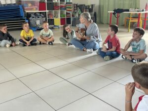 Initiation au chant et au rythmePar CCaillaud / 8 octobre 2025 Nous avons accueilli Annick dans notre classe. Avec elle, tous les lundis, nous travaillons le chant et le rythme. Nous découvrons aussi différents instruments de musique.