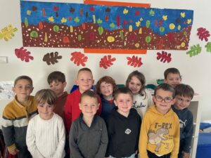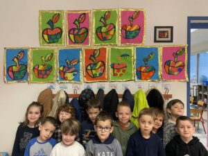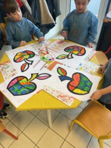Pour finir le projet, ils ont réalisé une fresque collective et un délicieux gâteau aux pommes qu’ils ont partagé avec les CP.