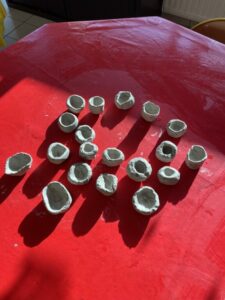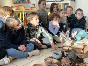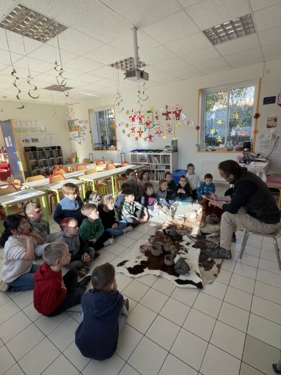 Découverte de la poterie à la PréhistoirePar CCaillaud / 6 janvier 2026 Les élèves de la classe de GSCP ont commencé un cycle culturel sur la Préhistoire en lien avec le Cairn. Les élèves ont réalisé des petits pots avec de l’argile et à l’aide de plumes et de coquillages ils les ont décorés.