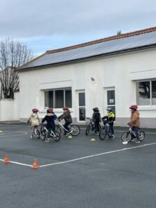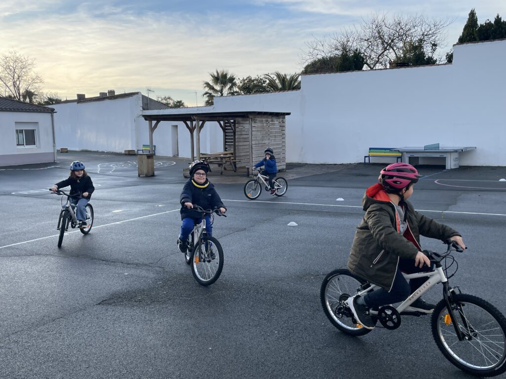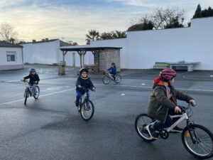 Sécurité routière en classe de CPPar CCaillaud / 14 janvier 2026 Sur la cour de l’école, les CP ont eu un temps de formation à la sécurité routière. A vélo, ils ont suivi des parcours. Ils ont appris à slalomer, à suivre un trajet, a freiné rapidement… C’était une belle expérience. Bravo les CP!